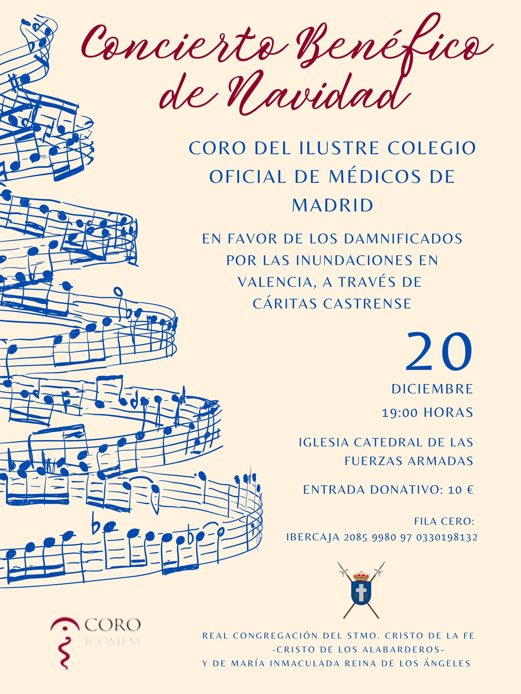 El pasado 20 de diciembre, la Iglesia Catedral de las Fuerzas Armadas acogió un emotivo concierto benéfico organizado por la Real Congregación del Santísimo Cristo de la Fe, Cristo de los Albarderos, y de María Inmaculada Reina de los Ángeles, bajo la presidencia del arzobispo castrense de España, el Excelentísimo y Reverendísimo Monseñor D. Juan Antonio Aznárez Cobo.