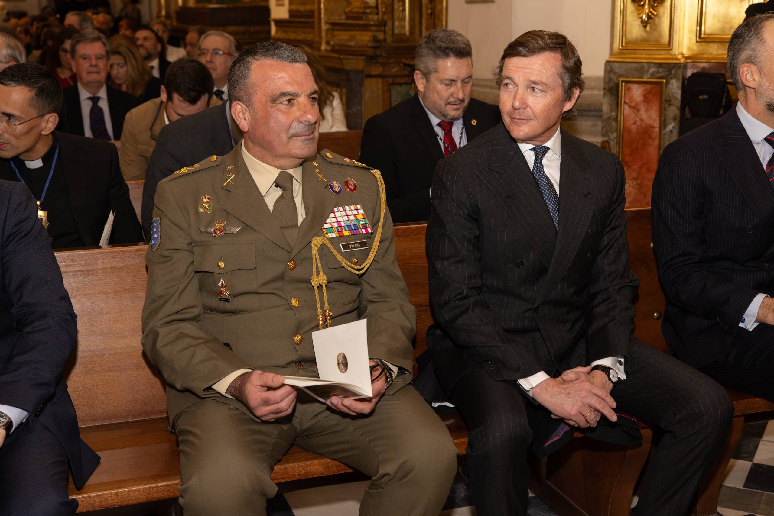 Don Pedro realizó un repaso completo y sentido de la trayectoria del pregonero de este año, el Excmo. Sr. D. Julio Salom Herrera, teniente general jefe del Mando de Canarias del Ejército de Tierra y comandante del Mando Operativo Terrestre, resaltando tanto su brillante carrera militar como su profunda fe cristiana y su cercanía a la Familia Real. Nacido en Madrid en 1963, D. Julio Salom Herrera ingresó en la Academia General Militar y fue destinado como teniente de Infantería al Tercio “Gran Capitán” de La Legión, en Melilla. Su trayectoria incluye importantes responsabilidades en operaciones internacionales como Bosnia, Irak y Kosovo, así como destinos destacados en unidades de élite. Fue ayudante de campo de S.M. el Rey Don Juan Carlos I y de S.M. el Rey Don Felipe VI, y ha ocupado puestos de alta responsabilidad en el Estado Mayor del Ejército. En 2023 fue promovido a teniente general y designado jefe del Mando de Canarias. Su historial está avalado por numerosas condecoraciones y un firme compromiso con el servicio y los valores que representa, siendo con ello un referente del Ejército de Tierra.