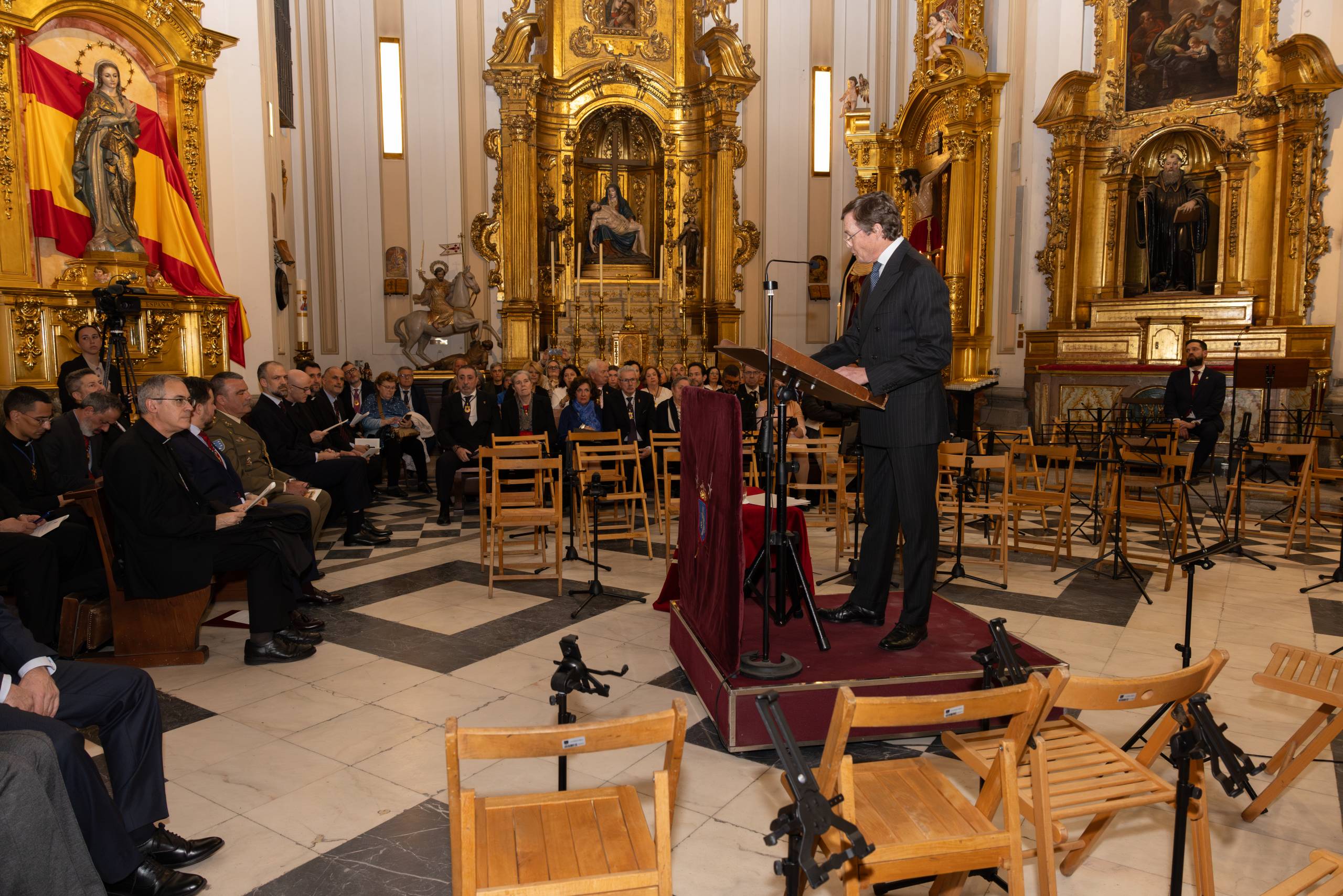 Ante la presencia de altas autoridades eclesiásticas y militares como el Excmo. y Rvdmo. Sr. D. Juan Antonio Aznárez Cobo, arzobispo castrense de España; el Excmo. Sr. D. Eduardo Diz Monje, jefe del Cuarto Militar de la Casa de S. M. el Rey; y el Ilmo. Sr. D. Pablo Mateo Álvarez de Toledo, coronel jefe de la Guardia Real, destacó que el Pregón es uno de los momentos más significativos de la Cuaresma, al preparar los corazones de los congregantes para la Semana Santa.