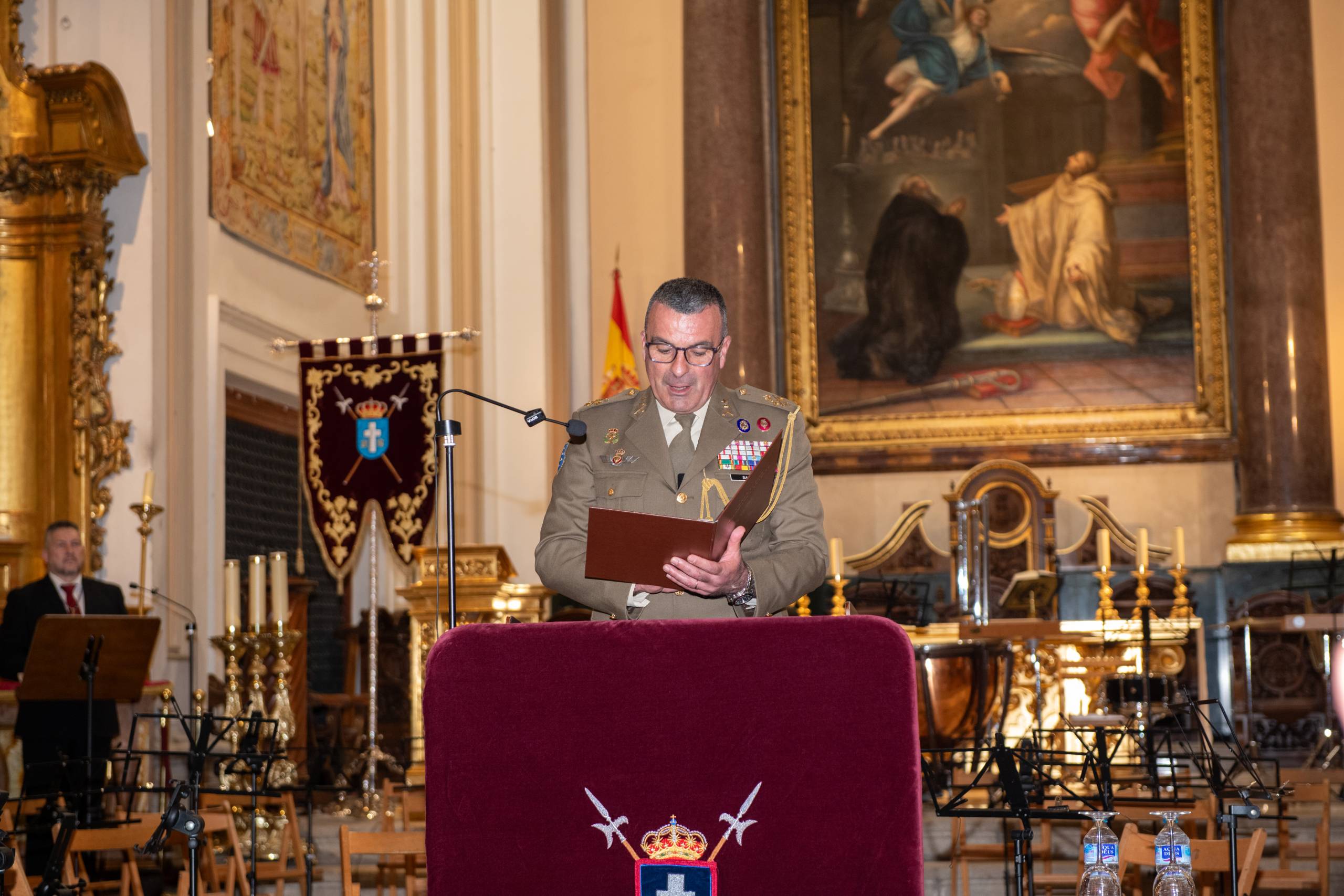 Antes del concierto, el Subteniente José María Fernández Aranda, miembro de la Unidad de Música de la Guardia Real, recitó una poesía dedicada al Cristo de los Alabarderos. En ella evocó la salida procesional del Viernes Santo, el silencio que acompaña al Cristo y la profundidad espiritual que despierta su imagen a su paso por las calles del viejo Madrid.