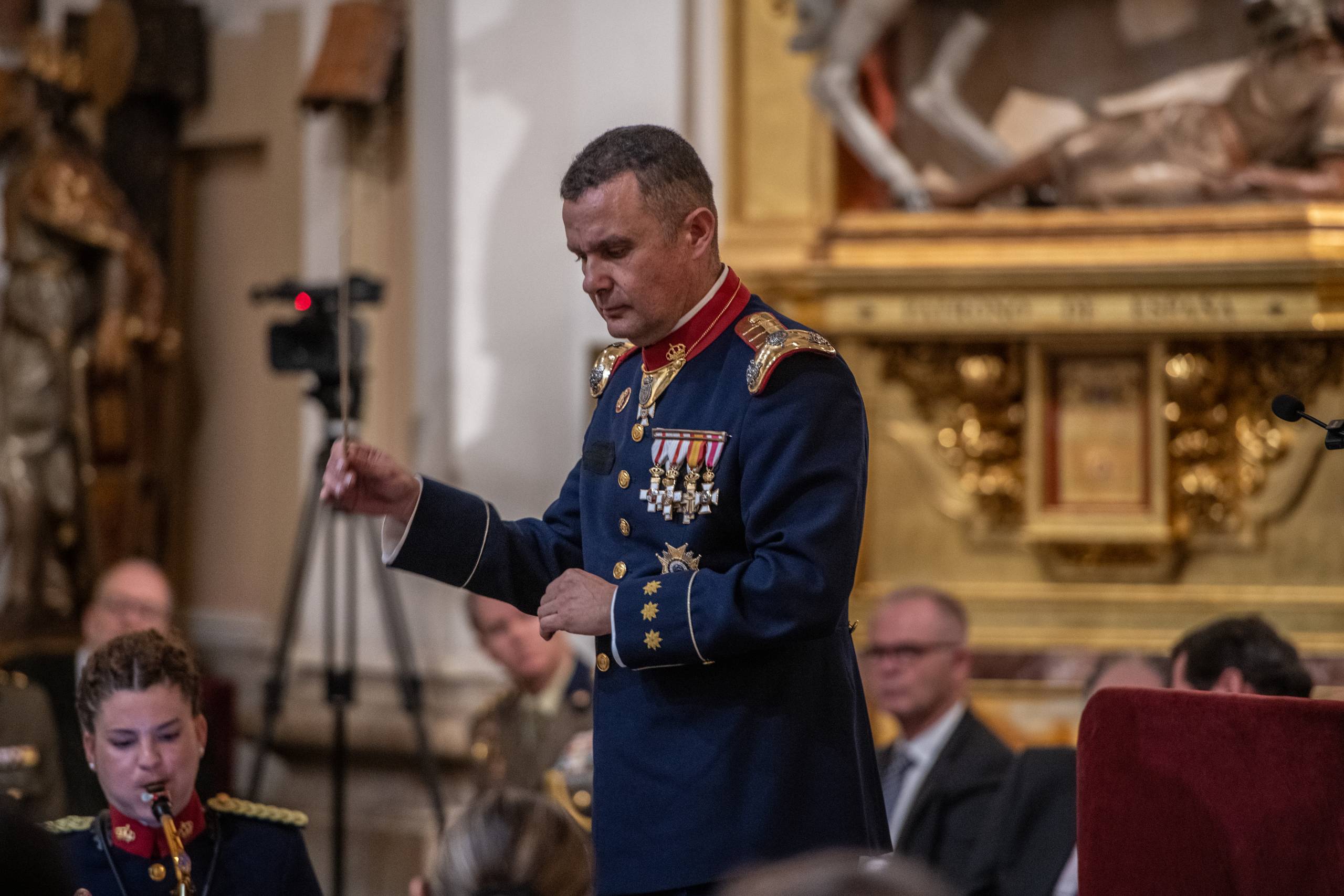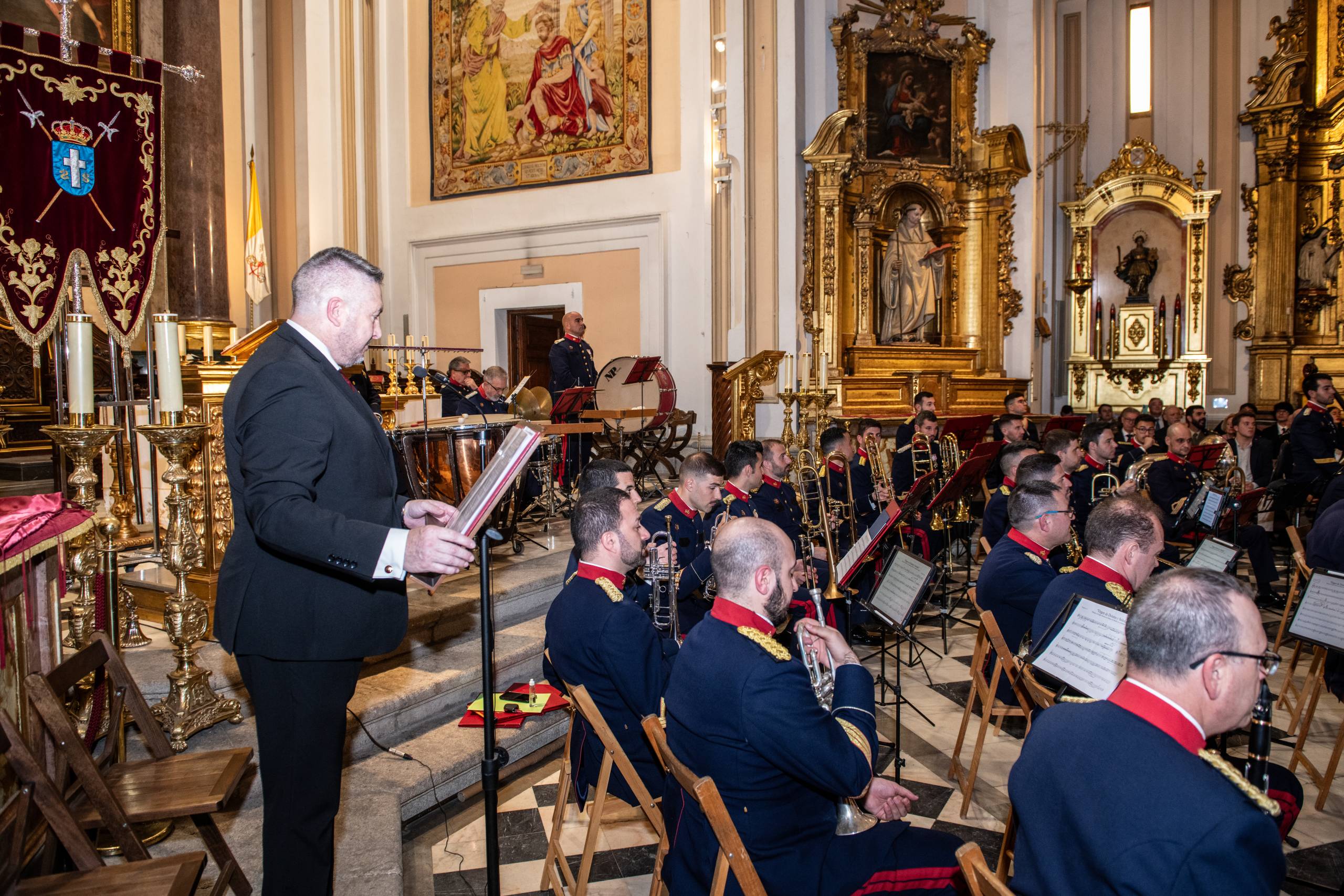 La Unidad de Música de la Guardia Real, heredera de la histórica Banda de Alabarderos, ofreció un programa cuidadosamente seleccionado para acompañar el espíritu solemne del pregón. Bajo la dirección del Coronel, el Ilmo Sr. D. Fernando Lizana Lozano, cada marcha aportó un matiz distinto dentro del amplio universo sonoro de la Semana Santa.