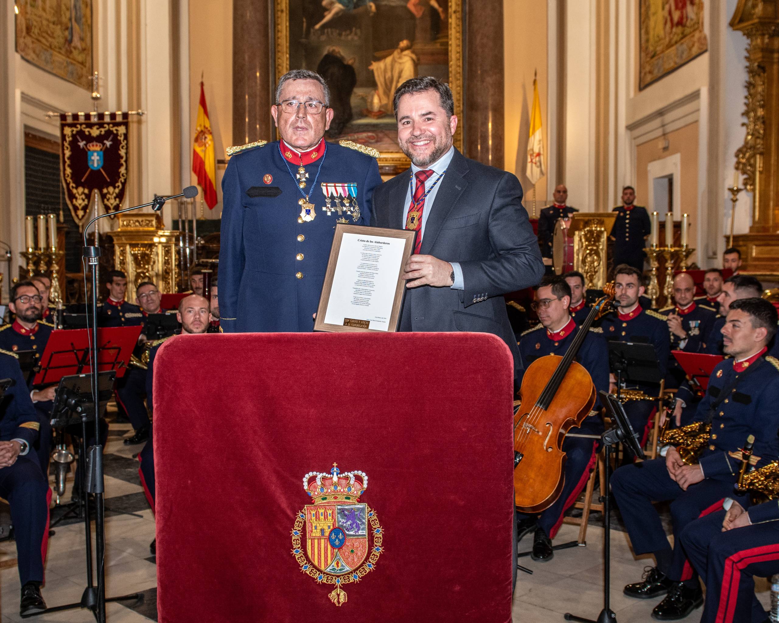 El acto terminó con la entrega de un obsequio al Coronel Jefe de la Guardia Real, el Ilmo. Sr. D. Luis Alfonso Choya, como muestra de reconocimiento y reafirmación del estrecho vínculo entre la Congregación y esta histórica unidad militar.